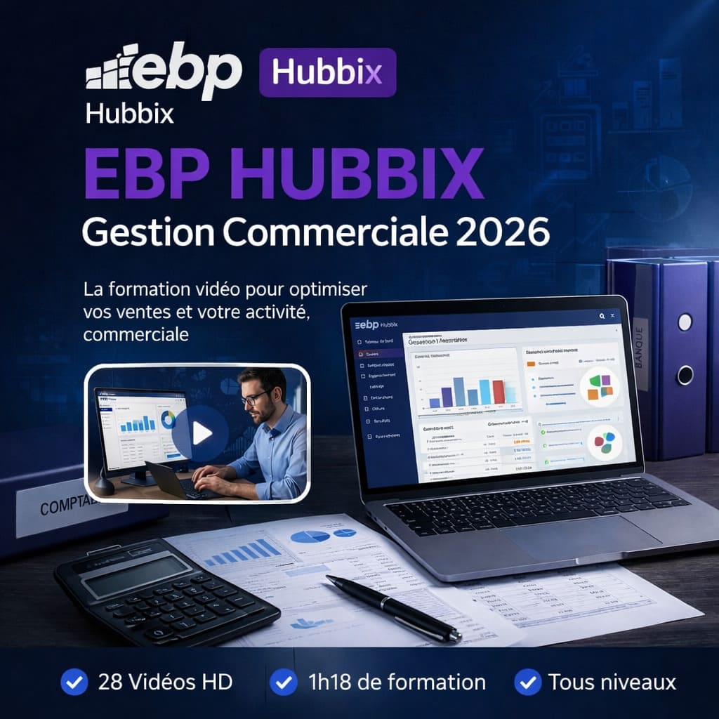 Cette formation vidéo a été conçue pour vous aider à prendre en main EBP HUBBIX Gestion Commerciale 2026 rapidement et efficacement.